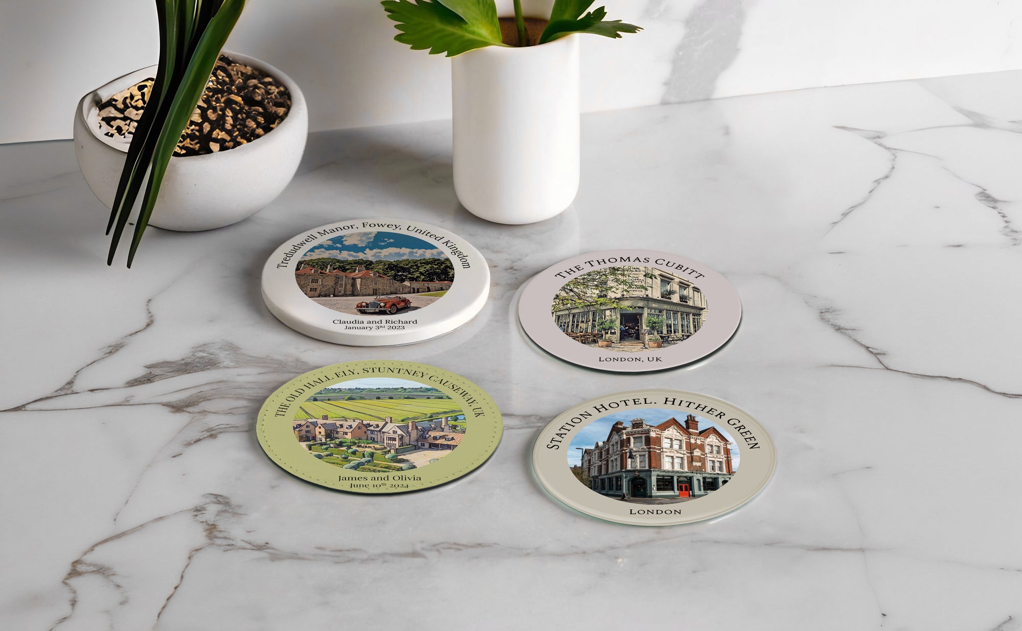 Enjoy the freedom to customise each coaster with unique text and colour variations, all included at no extra cost. Whether you choose ceramic, glass, or leather, our skilled team will work closely with you to ensure your designs are brought to life just as you envision.